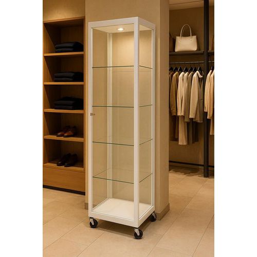 | Produktname | Säulenförmige Ausstellungsvitrine auf Rollen - 50 x 50 x 200 cm - Sarazino Vitrines, Gestell Farbe: Weiß |