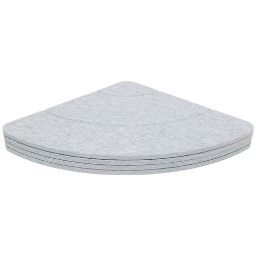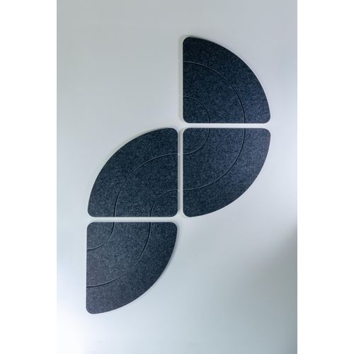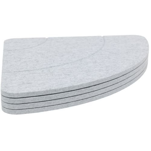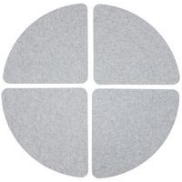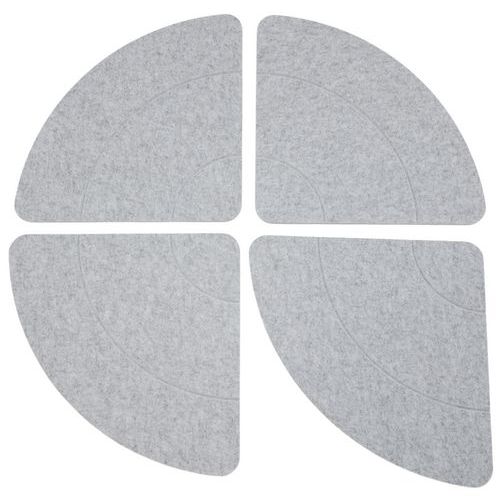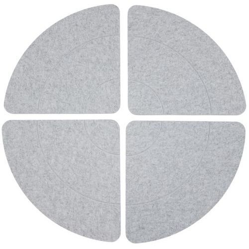 Set aus 4 Schallschutzelementen, rund, PET, leistungsstark Verbesserte Raumakustik für mehr Komfort (αw = 0,95 Plenum 200 mm) 4 Elemente, aus denen sich für eine individuelle Wanddekoration mehrere Formen gestalten lassen Leichtes Produkt, dank Haftpunkten einfach und schnell zu befestigen Feuerfestes Produkt nach Klasse B-s2-d0 Neutraler und zeitloser Farbton