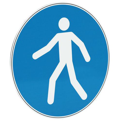 Gebotsschild mit Piktogramm „Fußgängerüberweg nutzen“ Aus 1 mm starkem PVC, leicht und einfach anzubringen Brandschutzklasse M1 für erhöhte Sicherheit im Innenbereich Ideal für Innenbereiche, die eine vorgeschriebene Kennzeichnung erfordern Klares, gut sichtbares Schild zur besseren Kennzeichnung von Fußgängerbereichen