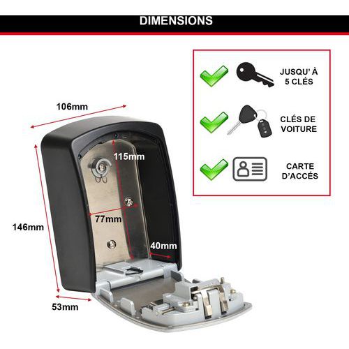 - Schlüsselkasten im Format L für ein großes Fassungsvermögen, mit Zahlenschloss