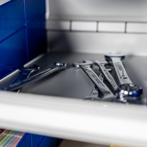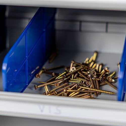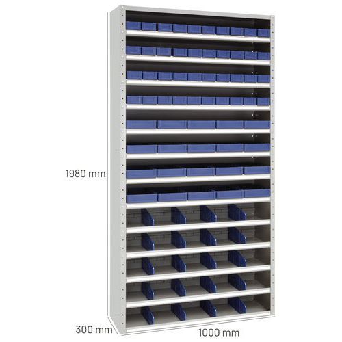 | Produktname | Schrank mit Fächern und herausnehmbaren Behältern - Manutan Expert, Werkstoff: Stahl, Gesamthöhe: 1980 mm |
