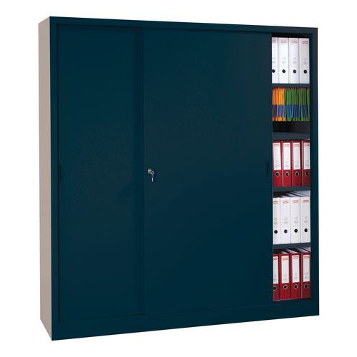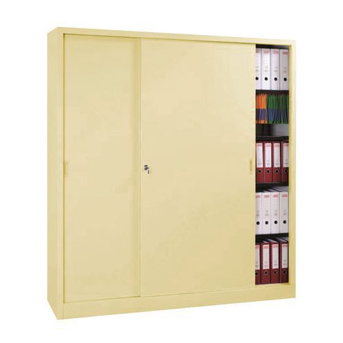 Verschließbarer Schrank mit Schiebetüren und Schloss.