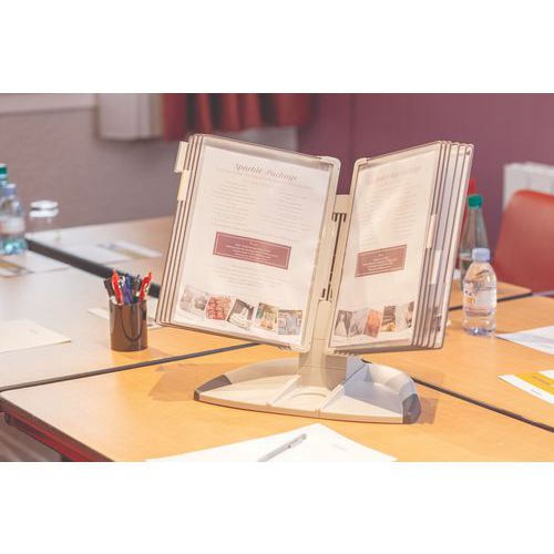 - Der Tischständer sorgt für eine klare und geordnete Darstellung Ihrer Unterlagen.