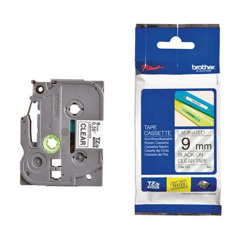 Schriftbandkassetten für Etikettiergeräte Brother, Brett Farbe: Transparent, Typ: TZE-121, Länge Band: 8 m