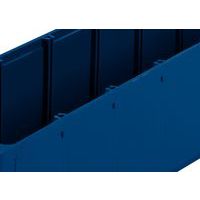Beständig gegen Stöße, Chemikalien, Öle, Fette und hohe Temperaturen. Der minimale Platzbedarf ermöglicht die effiziente Handhabung und Lagerung von Einzelteilen. An dynamische Regalbediengeräte angepasst Schnell und einfach variierbar dank der seitlichen Laufschienen. Optimiert die Regalflächen und ist mit großen Etikettierflächen auf der Vorderseite ausgestattet.