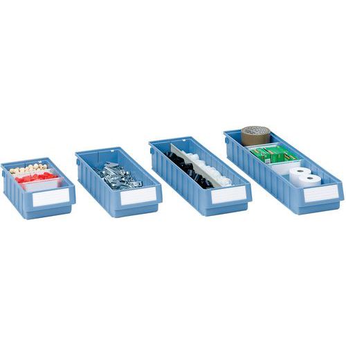 Ideal für Aufbewahrung und Lagerung von Kleinteilen. Viele Inneneinteilungsmöglichkeiten. Formstabil, beständig gegen Öle und Fette. Stapelbar mit Behältern der Serie RK derselben Breite.