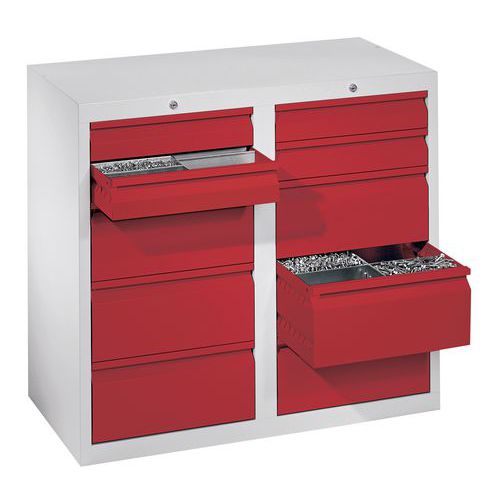 Schubladenschrank für Werkzeuge H90 - 2 Säulen - 10 Schubladen