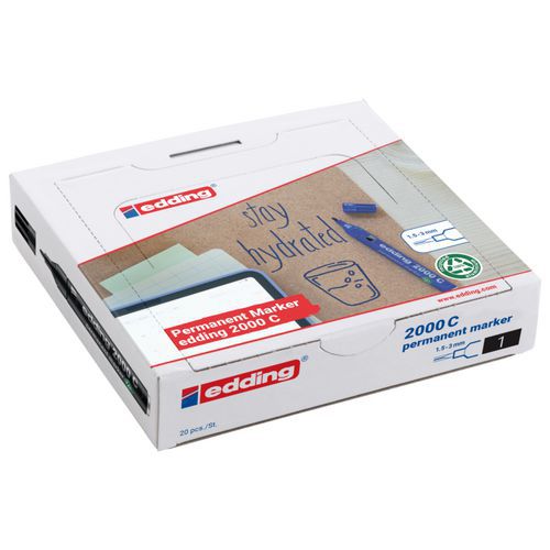 | Produktname | Schwarzer Permanentmarker Edding 2000C - Eco Pack, Tinte Farbe: Schwarz, Min. Linienstärke: 1.5 mm |