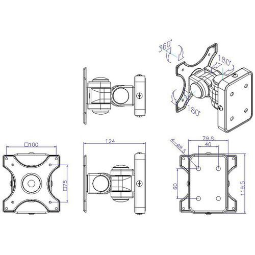 - Wandhalter mit Schwenkfunktion für LCD-Bildschirm Nach links und rechts und nach oben und unten um bis zu 360 Grad schwenkbar.