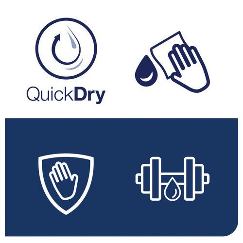 Papier mit sehr hoher Saugkraft. Qualität QuickDry: fester und saugfähiger als herkömmliches Papier. Schützt die Hände vor Hitze und Schmutz. Sehr effizient zum Aufwischen von Öl. Auch in feuchtem Zustand sehr robust. Ergonomische Spenderbox, leicht zu tragen, zu öffnen und zu entsorgen.