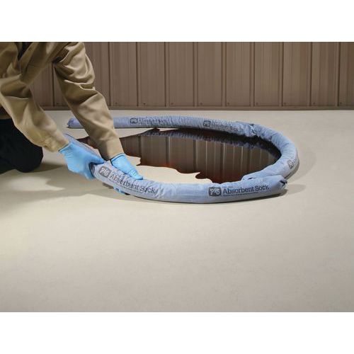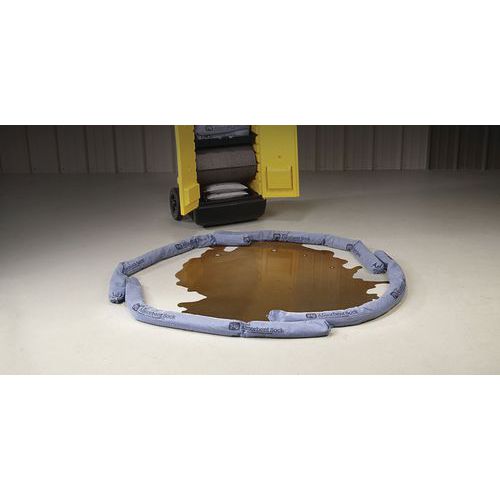 Rasches Absorbieren und hohes Absorptionsvermögen durch mineralische Komponente. Effiziente Begrenzung von verschütteter Flüssigkeit. Passt sich perfekt der Bodenform an. Auch im gesättigten Zustand gute Bodenhaftung. Leicht erkennbarer, blauer Saugstrumpf.
