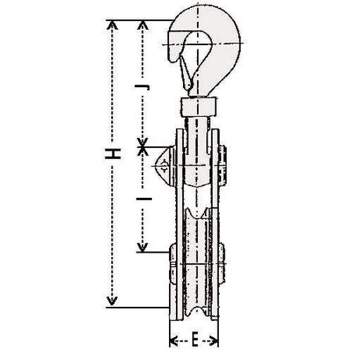 Kompaktes und robustes Design. Einfacher Gebrauch: Öffnung zum Positionieren oder Entfernen des Kabels, ohne Aushängen der Seilscheibe. Die Anbringung einer Kabelführung, die in die Tüllen aus Stahlblech gepresst ist, erhöht die Langlebigkeit des Kabels, da es permanent durch die Rille geführt wird. Version mit Wirbelhaken (Tragkraft 200 oder 500 kg) oder Drehhaken mit Sicherheitsfalle (Tragkraft 1.000 bis 5.000 kg).