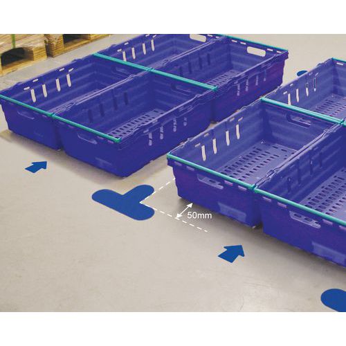 - Aufkleber in T-Form zur Bodenmarkierung Entwickelt zur Kennzeichnung von Bereichen und Lagerplätzen in Lagerhäusern