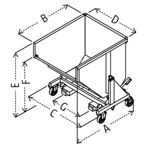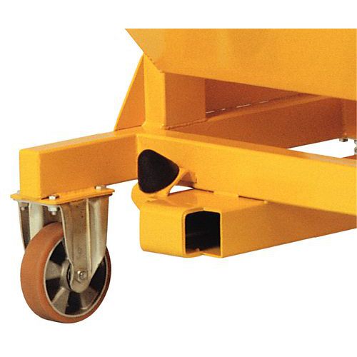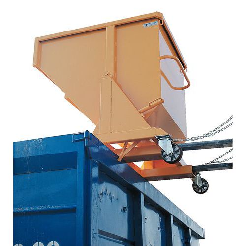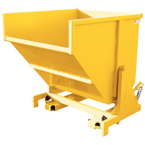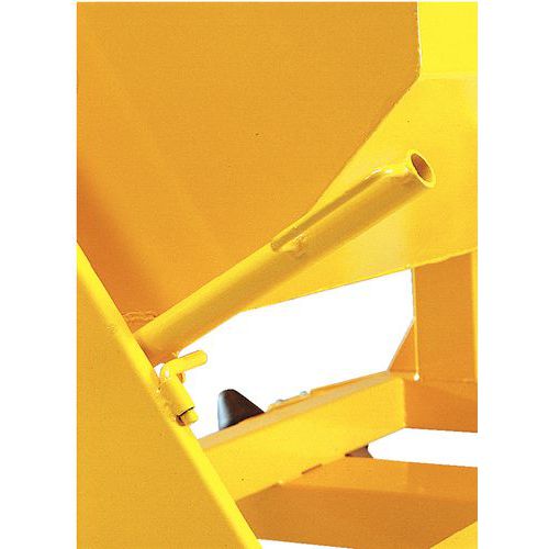 Automatische Kippauslösung durch Kontakt und manuelles Kippen per Hebel Sicherheitskette gegen unbeabsichtigtes Kippen beim Transport. Leichtes Wiederaufrichten durch Druck auf die Vorderseite des Auffangbehälters. Hergestellt aus gefaltetem Stahlblech 3/10 Fortlaufende Schweißnähte außen, unterbrochene Schweißnähte innen Max. Belastung (kg) : 1800 Kundengarantie : 3 Jahre CE