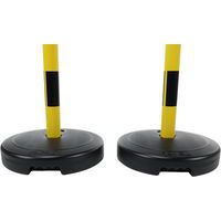 Pfosten zum Beschweren auf Sockel mit ausziehbarem Gurt.
