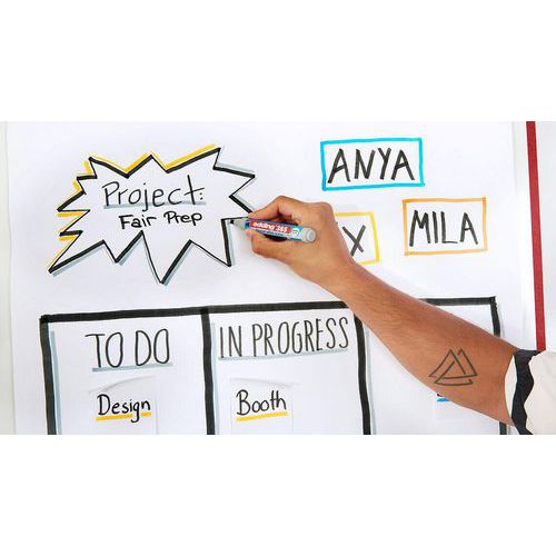 | Produktname | Set mit 4 Markern für Flipcharts, e-385 - edding, Tinte Farbe: Gemischt, Nachfüllbar: ja, Einziehbar: nein |