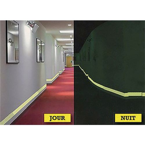 | Produktname | Sicherheits-Markierungsband, nachleuchtend, Selbstklebend: ja, Stärke: 0.15 mm, Werkstoff: PVC, Höhe: 10 m |