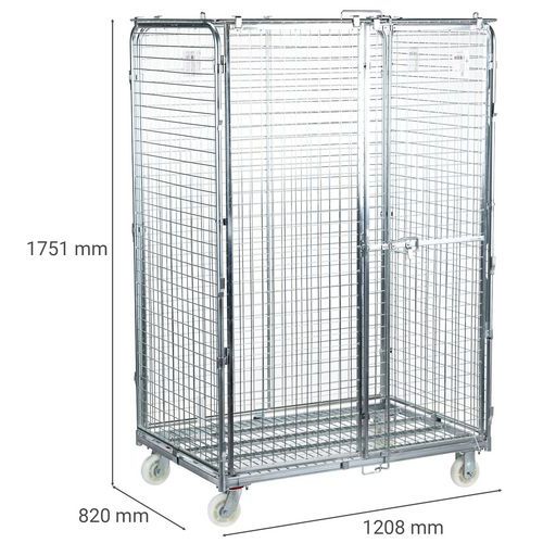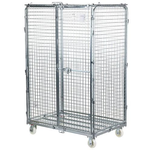 - Sicherheits-Rollcontainer Maxi mit 3 Seiten, 1 Dach, 2 Flügeltür.