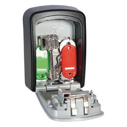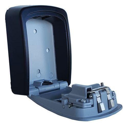 | Produktname | Sicherheits-Schlüsselkasten, Werkstoff: Stahl, Gesamthöhe: 118 mm, Gesamtbreite: 83 mm, Farbe: Schwarz/grau |