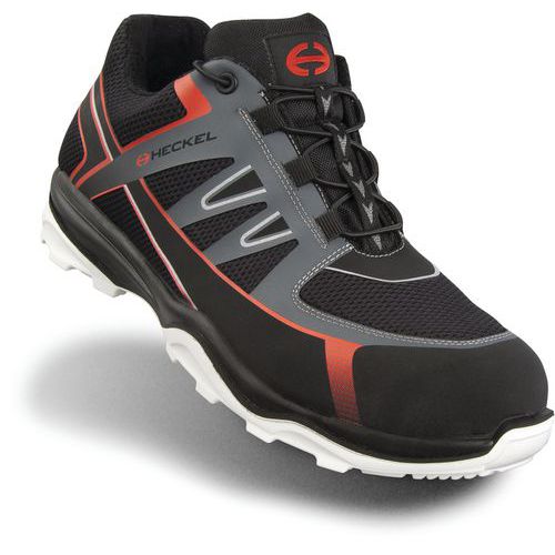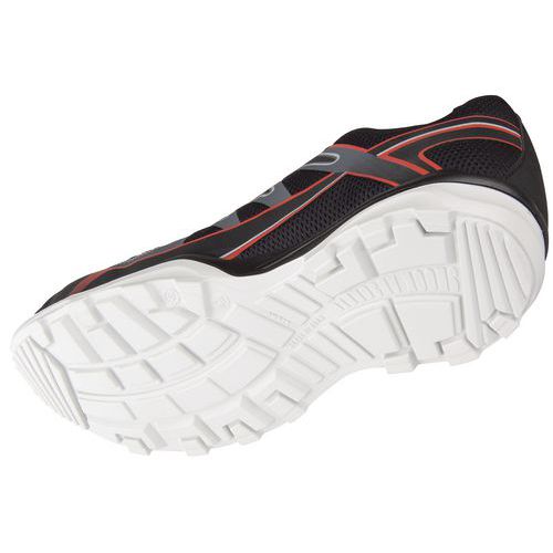Nichtmetallische Spitze, nicht leitend bei Hitze und Kälte. Nichtmetallische, durchtrittsichere Sohle, leicht, flexibel, wärme- und kältebeständig. Herausnehmbare, anatomische Innensohle mit Stoßdämpfern vorne und hinten.