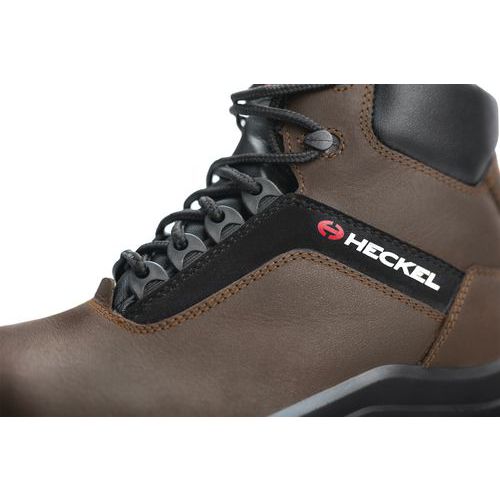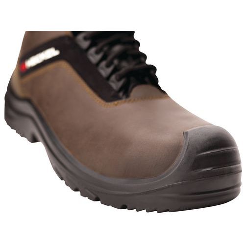Niedrige Sicherheitsschuhe Suxxed Offroad Low S3. PU2D-Sohle für optimale Flexibilität und Stoßdämpfung, sehr gute Rutschfestigkeit (SRC), beständig gegen Öle und Kohlenwasserstoffe. Schaft aus braunem, geöltem, wasserabweisendem Narbenleder. Metallfreie Zehenkappe, leichter als Stahl, leitet Wärme und Kälte nicht. Durchtrittsichere Sohle, nicht metallisch, leicht, flexibel, nicht wärme- und kälteleitend Herausnehmbare, anatomische Innensohle, Unterseite aus PU-Schaum. CE Antistatisch Ölbeständige Sohle
