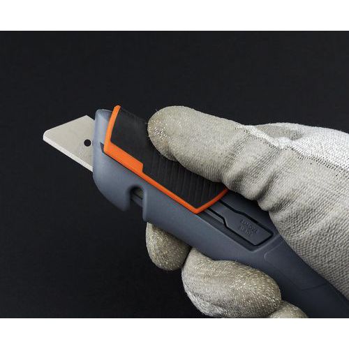 Sicherheitsmesser aus Bi-Material mit einziehbarer Klinge Perfekt geeignet für Umschlagsarbeiten, z. B. das Öffnen von Kartons und Verpackungen Die Klinge fährt beim Loslassen des Schiebers automatisch ein Lieferung erfolgt mit abgerundeter, umkehrbarer Klinge für eine längere Nutzung Für Links- und Rechtshänder gleichermaßen geeignet Geriffelter, rutschhemmender Schieber aus Bi-Material für bessere Griffigkeit in der Hand Mit integriertem Auftrenner Kompatibel mit dem Abroller ZICOU