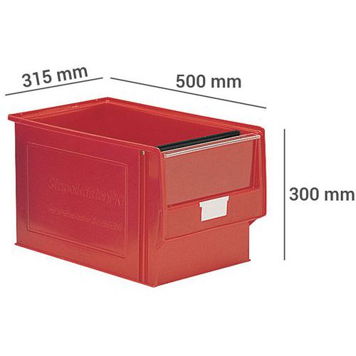 | Produktname | Sichtlagerkasten für die Industrie, Gesamtinhalt: 38 L, Werkstoff: Kunststoff, Gesamtlänge: 500 mm |