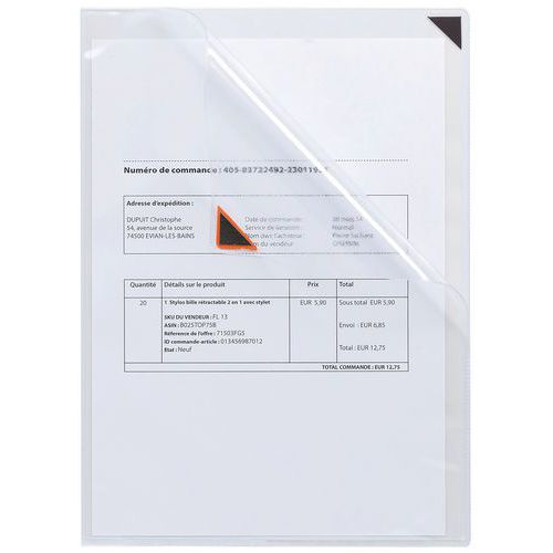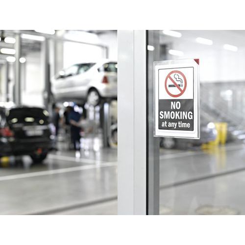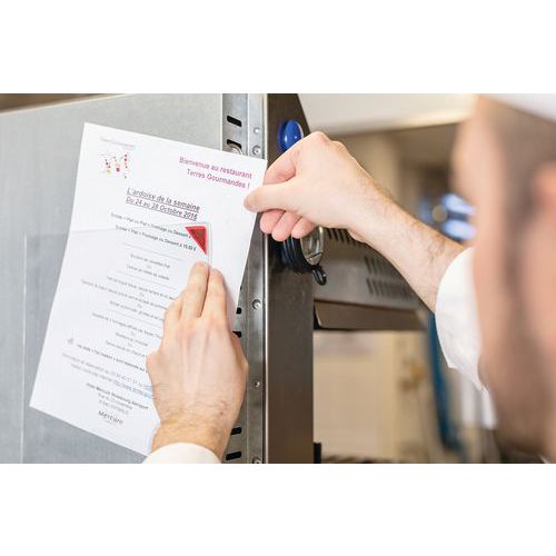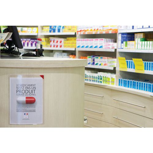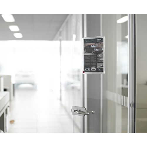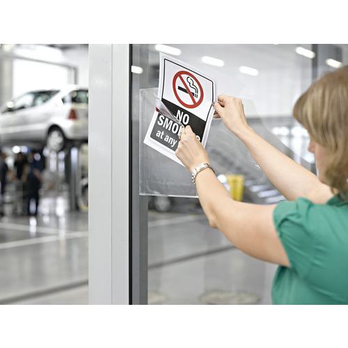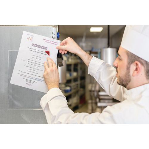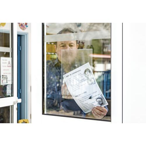 Ideale per esporre documenti su pareti di vetro e vetrine (trasparenti su entrambi i lati). Preserva le superfici: non necessita di nastro adesivo, spille o graffette, quindi niente buchi. Migliora l'immagine della tua azienda: i documenti sono ben presentati. Chiusura angolare magnetica. 2 strisce adesive sul retro. Da utilizzare in modalità verticale o orizzontale. Può contenere fino a 10 fogli di carta da 80 g.