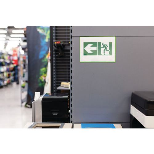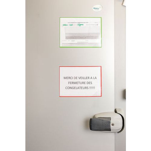 Magnetische Sichttafel Kang lässt sich an allen metallischen Oberflächen befestigen Rückseite komplett magnetisch, tadellose Beständigkeit Öffnung an 2 Seiten für ein einfaches Einführen von Dokumenten. Eckverschluss Easy Load zum praktischen und effizienten Einführen und Herausnehmen von Dokumenten Verwendung im Hoch- und Querformat Einfache und schnelle Installation, ohne Schrauben oder Nägel. Lässt sich ablösen, ohne Spuren zu hinterlassen. Utilizzo in verticale e in orizzontale. Soluzione espositiva per l'utilizzo su macchine, porte, tavole metalliche, frigoriferi, ecc. Tasca in PVC con retro magnetico. Può contenere fino a 10 fogli di carta da 80 g. Fondo completamente green. Hergestellt in der EU
