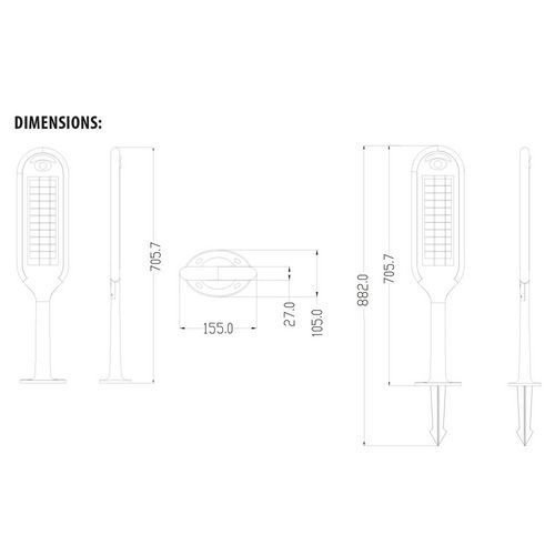 LED-Solarleuchte aus Polykarbonat in modernem und äußerst raffiniertem Design Stoßfest und witterungsbeständig, der elektronische Teil ist besonders wasserbeständig Zwei Solarmodule auf Vorder- und Rückseite mit 6 W für maximale Energieladung Der Li-Ion-Akku mit 2000 mAh wird über den Tag aufgeladen und schaltet sich automatisch bei Dämmerung ein Die Leuchte lädt sich tagsüber dank Sonneneinstrahlung auf