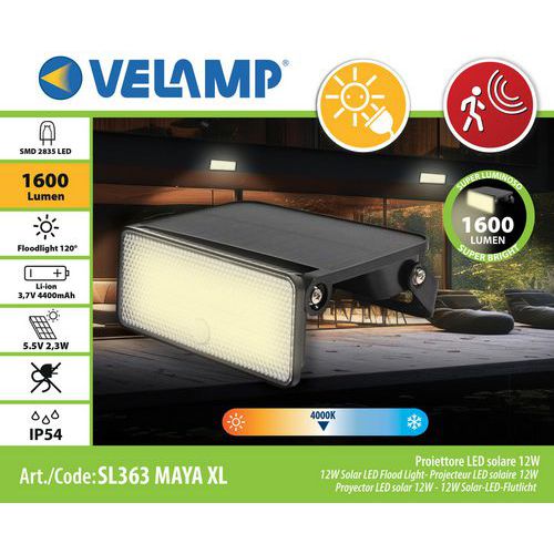 Solarstrahler mit Bewegungssensor - Velamp, Lichtstrom: 1600 lm, Typ Lampe: Led Glühbirne oder Modul