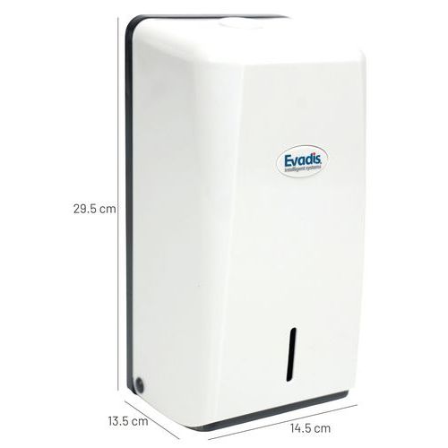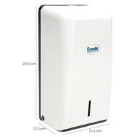 | Produktname | Spender für gefaltetes Toilettenpapier, Farbe: Weiß, Höhe: 29.5 cm, Breite: 14.5 cm, Materialien: ABS |