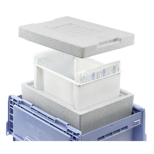 Inhalt: - 1 Neopor®-Box mit Deckel - 1 waschbare Innenschale aus PS - 3 Kühlelemente mit spezieller Isolationsschicht Icecatch® Solid Isolated