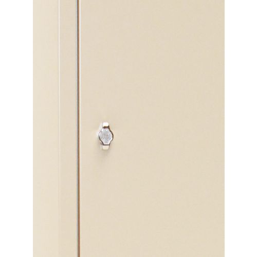 Verstärkte Türen, Türöffnung 180°. Verdeckte Scharniere. Hygienisch: Belüftungsschlitze oben und unten an der Spindtür. Mit Vorbohrungen zur Befestigung an der Wand. Gestanzter Namensschildträger.