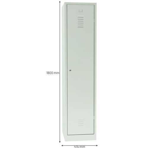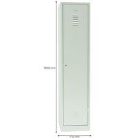 Spezieller, robuster Lagerspind für schmutzige Industrieumgebungen, wird flach verpackt und demontiert geliefert Langlebige Metallkonstruktion mit hochwertiger, elektrostatischer Pulverbeschichtung 1 hohes Ablagefach, 1 Garderobe im unteren Bereich, durch Trennwand in 2 Bereiche unterteilt Verstärkte Tür mit verdeckten Scharnieren, geräuschhemmender Kunststoffstopper Tür mit doppelten Luftschlitzen zur Luftzirkulation und mit geprägtem Etikettenhalter Spind mit hohem Bedienkomfort und weiter Türöffnung von 115° Verschlusssystem nicht im Lieferumfang enthalten