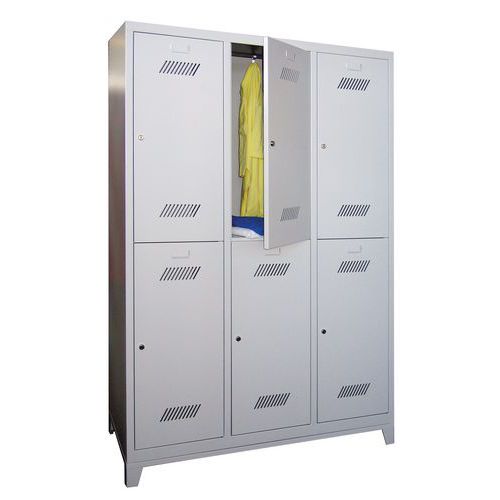Spind mit 6 Fächern und Kleiderabteil, Medium - 3 Säulen, Breite 400 mm - auf Füßen