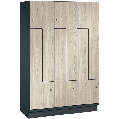 Spind mit Holztüren in L-Form - 2 bis 6 Fächer, Breite 200 mm - auf Sockel - CP