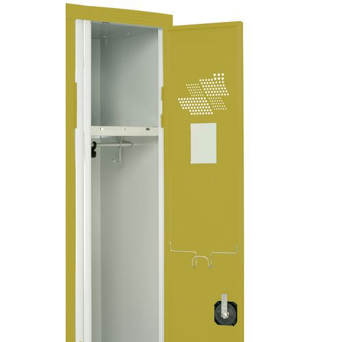Erstklassiger Spind aus Stahlblech, hohe Festigkeit, formstabil. Profilstahlblech 6/10 (entspricht der Standardfalzung 8/10) Miteinander verschweißte Säulen für eine höhere Stabilität. Ausgezeichnete mechanische Beständigkeit mit geschlossenem Hakenprofil. Nicht aushängbare Tür mit Einbruchschutz, offen oder geschlossen. Scharniergelenk mit 18°-Öffnung Einteiliger Spindschrank mit Etikettenhalter. Unisci resistenza, sicurezza, estetica per i tuoi spazi collettivi! Stahlblech Stärke : 6/10 Kundengarantie : 3 Jahre