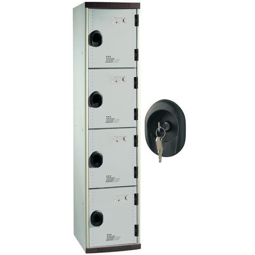 | Produktname | Spind Seamline Optimum® mit 4 Fächern - 1 Säule, Breite 400 mm - auf Sockel - Acial |