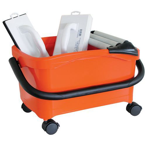 - Innovatives System für professionelle Fliesenleger Besteht aus einem robusten, klappbaren Wagen mit einem Eimer mit großem Fassungsvermögen für den Transport des Klebers und Werkzeugen mit Stab, sodass der Kleber im Stehen aufgetragen werden kann Keine Arbeiten im Knien mehr: Diese Lösung reduziert Schmerzen und Muskel-Skelett-Erkrankungen Komplettset zum Transportieren und Auftragen von Kleber im Stehen