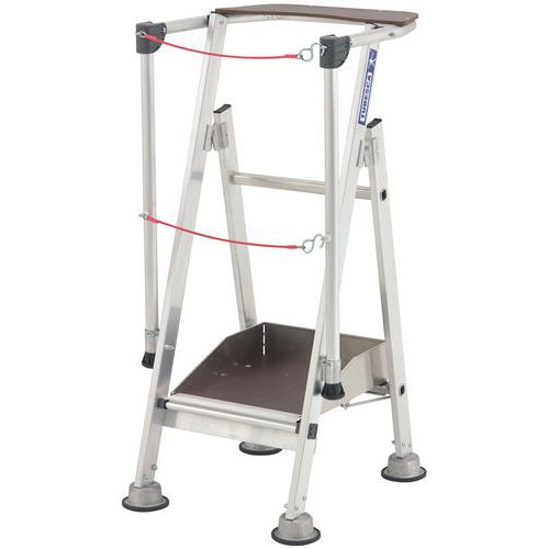 Einklappbare Stufen mit System zur Verriegelung in Arbeitsposition.