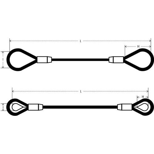 Stahlseilschlinge aus Edelstahl mit einem Strang - Verstärkte Kauschen - Zugkraft 200 bis 3.200 kg