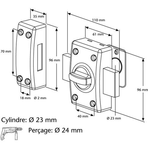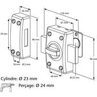 - Schlosskasten und Schließblech aus tiefgezogenem Stahl Riegel aus verschraubtem, verchromtem Stahl (austauschbar) Schraubenabstand (40 x 70 mm)