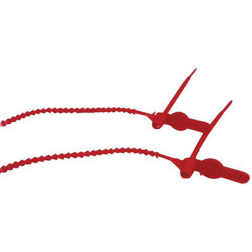 | Produktname | Standardplombe mit geripptem Band, Farbe: Rot, Gesamtlänge: 210 mm, Stift Ø: 3.3 mm, Materialien: Polyethylen |