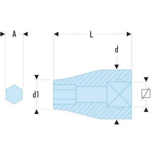 | Technische Daten | A []: 5/16, d []: 5/16, d [mm]: 18,0, d1 [mm]: 14, L [mm]: 30, Vierkant []: 3/8, [g]: 30, |