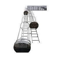Anpassbare Sicherheitsleiter für alle Gebäudemaße. Aluminiumlegierung: optimales Kraft-Gewicht-Verhältnis Einfache und schnelle Montage und Anbringung. Mit Korrosionsschutz, leicht zu reinigen. Scala con interasse pioli 280 mm. Uscita frontale con crinolina larghezza 1300 mm.