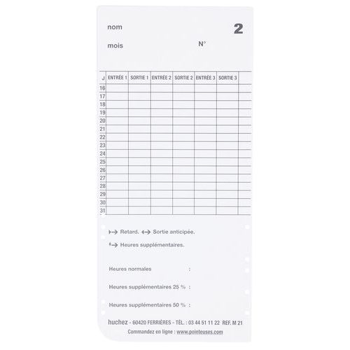 | Produktname | Stempelkarte ER1600 und ER2700 - Huchez, Typ: Arbeitskarte, Für Modell: Stempeluhr ER 1500/2500 |