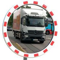 Straßenspiegel aus Acryl mit rot-weißem Rahmen - Dan Mirror, Überwachungsradius: 22 m, Form: Rund