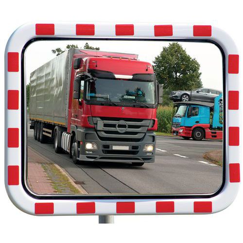 Straßenspiegel aus Acryl mit rot-weißem Rahmen - Dan Mirror, Überwachungsradius: 27 m, Form: Rechteck