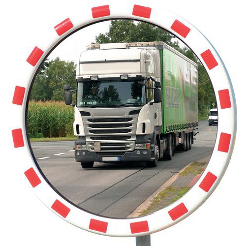 Straßenspiegel aus Edelstahl mit rot-weißem Rahmen - Dan Mirror, Überwachungsradius: 22 m, Form: Rund